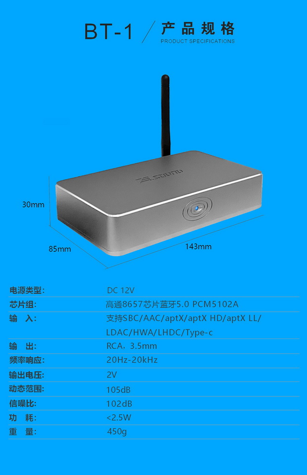 BT-1蓝牙5.0接收器的推出,将接替原来CD机家族的角色,使东方之声的音源产品进入了无线时代。同时也加入了引以为豪的“平衡校音技术”使得声音的频率分布更为全面与平衡,综合素质超越同类型产品。在高格式媒体文件和LPS-1音频线性电源的配合下,能从听感上真切的感受到超越自身CD播放器的效果。